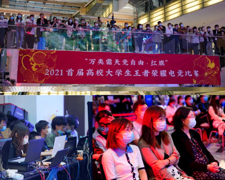 2021年5月14日,由中国传媒大学动画与数字艺术学院举办的“万类霜天竞自由 · 红旗” ·2021首届高校大学生电竞文化周在西单大悦城顺利开幕,中国传媒大学动画与数字艺术学院院长黄心渊、党委副书记郑丹琪、游戏系系主任张兆弓、中国传媒大学设计思维学院院长税琳琳等出席本次开幕。