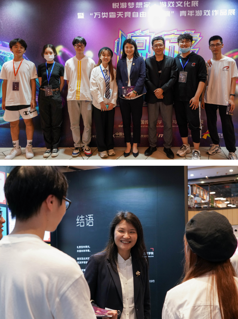 中国传媒大学动画与数字艺术学院党委副书记郑丹琪、中国传媒大学动画与数字艺术学院教师范敏和辅导员老师吴亚楠出席电竞比赛决赛