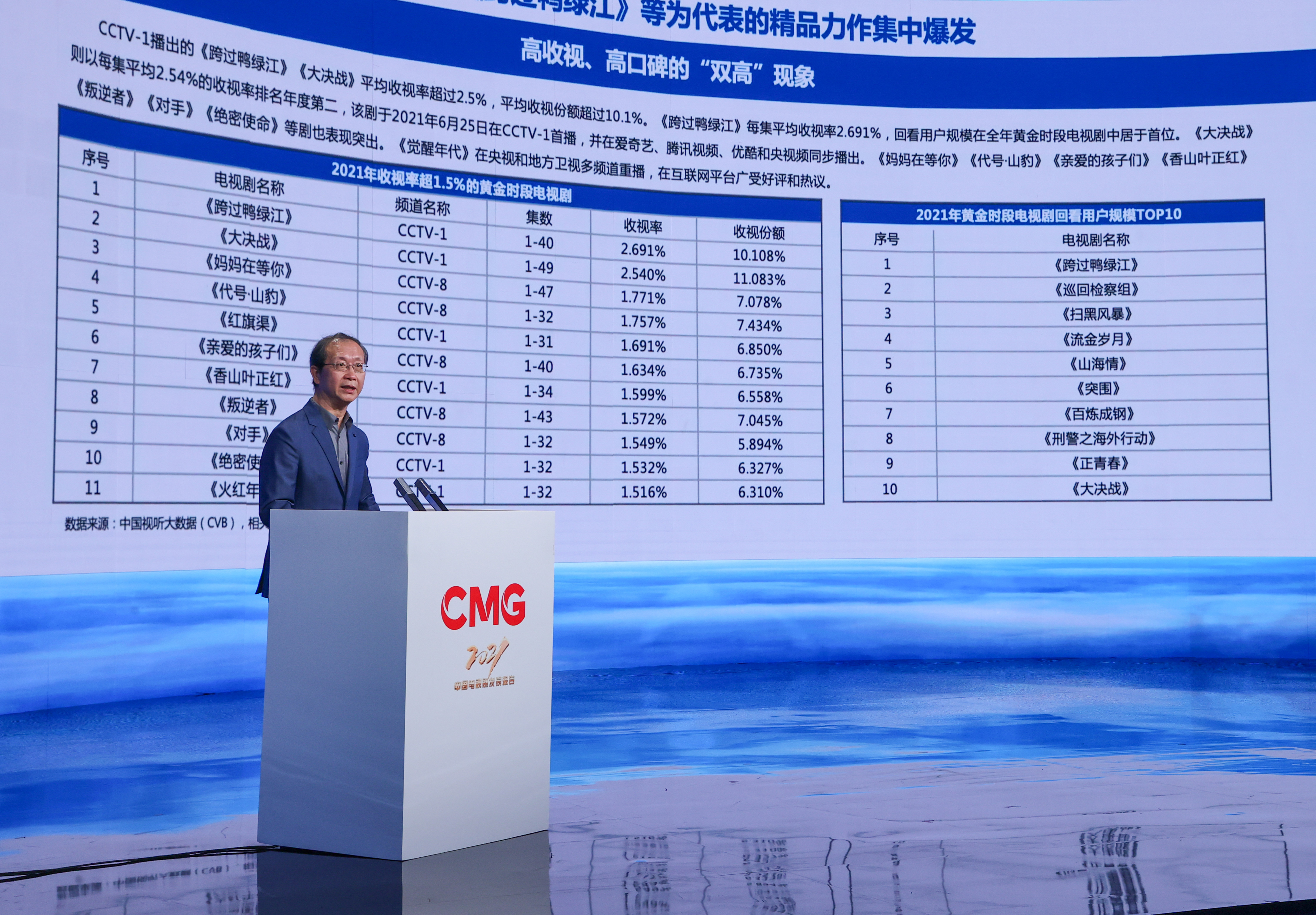 总台影视剧纪录片中心主任庄殿君解读了2022年电视剧行业的发展趋势,表示总台电视剧将立足国家大台的平台定位、核心受众和主流用户,探索电视剧内容传播的更多可能。