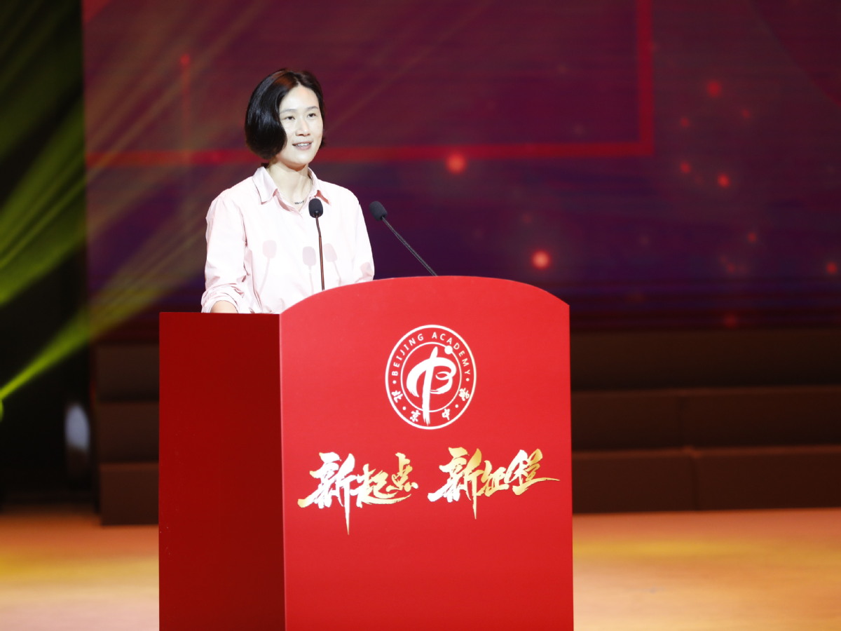 随后,朝阳区人民政府副区长尹园致辞。首先,她对北京中学新校区的启用表示热烈祝贺。尹区长对于北京中学作为教育部基础教育改革实验校,在区域基础教育优质均衡发展作出的表率作用给予了充分肯定。她表示,北京中学新校区建设是区域教育事业发展中的一项重要工程,是扩大优质教育资源供给、形成辐射示范引领的重要举措。新校区的落成,将极大改善东坝地区的教育教学质量,必将为地区和学校发展注入新的活力。