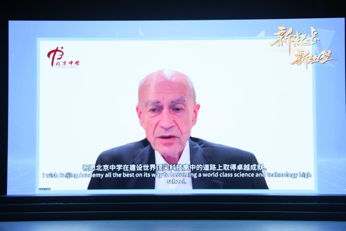 站在新的起跑线上,北京中学积极探索,开启了崭新的育人篇章 —“诺奖创新班”成立。这一举措旨在进一步推动学校在国际化和科技创新人才培养道路上坚定前行,为学生提供更优质、更具挑战性的教育资源和发展平台。诺贝尔获奖者托马斯・聚得霍夫通过视频送来祝福,他对北京中学成立 “诺奖创新班” 表示赞赏,并希望同学们能够在科学探索的道路上保持好奇心和求知欲,勇于追求真理,不断攀登科学高峰。