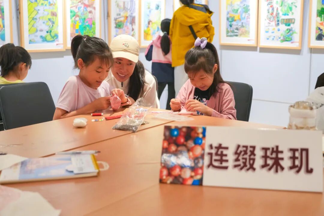 “连缀珠玑”互动项目中,孩子们举着亲手制作的串珠作品,兴奋地向美术教师展示。这场以 “指尖串雅趣,彩珠承文化” 为主题的串珠互动实践活动,将传统美学与手工技艺结合,让青少年在 “选珠、穿线、造型” 的过程中,感受串珠艺术的灵动之美,更在方寸之间融入对传统文化符号的理解。作为金帆书画院东城区少年宫美术分院 “以文化人以美育人” 系列的实践活动,此次串珠互动始终让孩子在安全、有趣的氛围中收获成长。